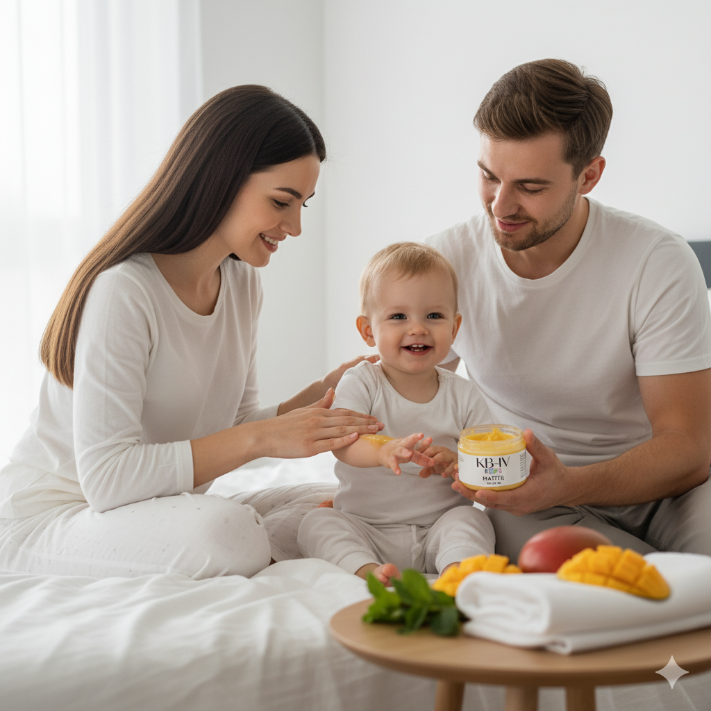 Born from a tradition of daily skincare, KB-IV Body Butter is safe, natural, and effective for both adults and children. Packed with Mango Butter, Coconut Oil, Shea Butter, Grapeseed Oil, and Safflower Oil, it melts effortlessly into the skin, leaving it soft, smooth, and radiant. Perfect for daily use, soothing dry skin, or as a silky massage butter.